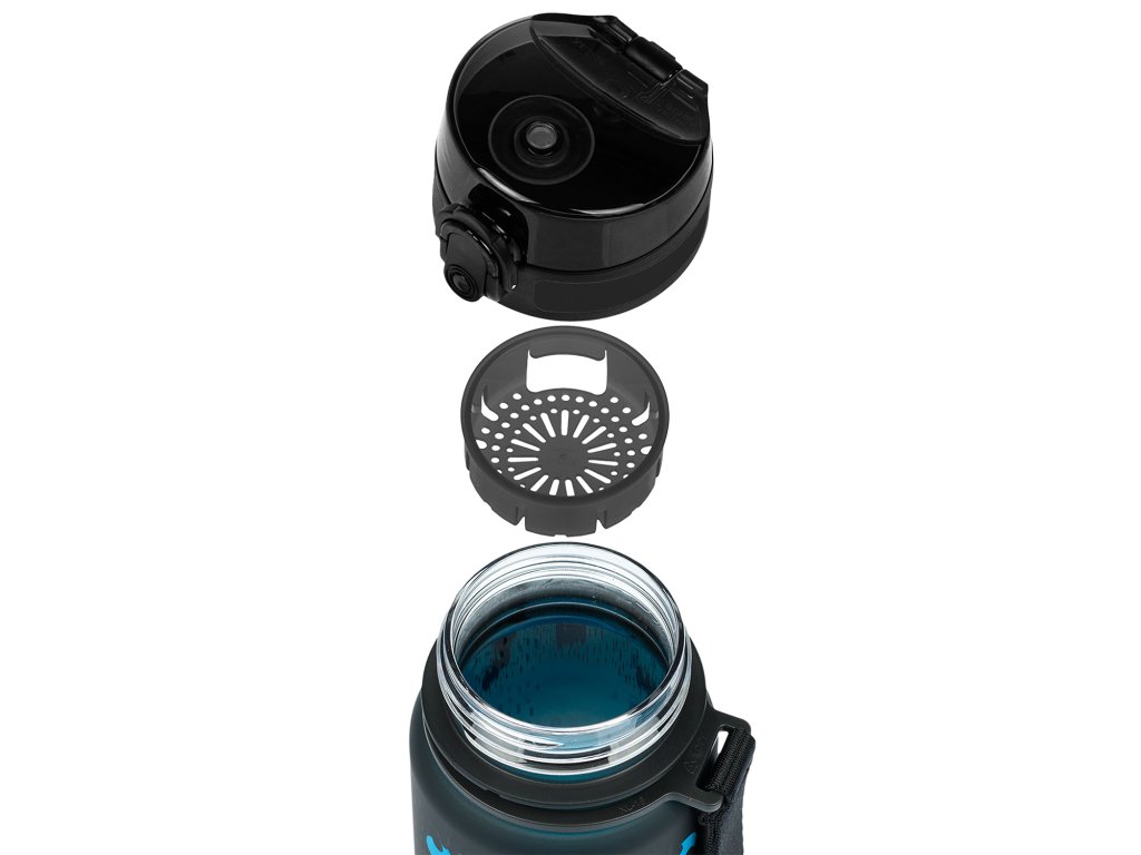 Uzamykatelné víčko nepropustí ani kapku nápoje a zaručuje jednoduché a intuitivní používání. Součástí láhve je i sítko, díky kterému můžete láhev použít i na limonády s ovocem nebo čaj (materiál je vhodný i pro horké nápoje). K láhvi je připevněné také poutko pro pohodlné nošení v ruce.