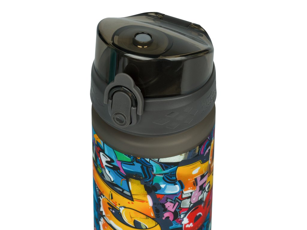 Zdravá tritanová láhev se stylovým motivem skateparku, praktickým uzávěrem a poutkem pro pohodlné nošení v ruce.