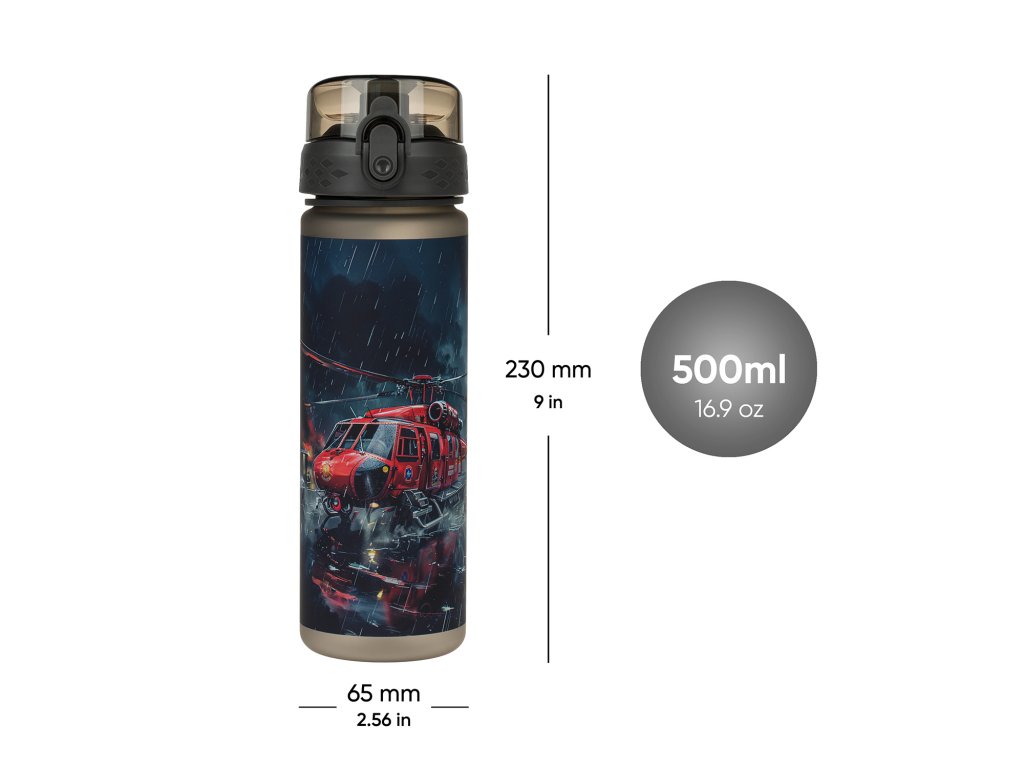 Zdravá tritanová láhev s atraktivním motivem záchranářů poskytuje dokonalou ochranu před žízní.